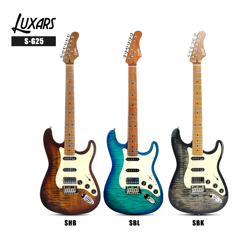 Obtenga guitarras eléctricas ST de alta calidad para pedidos al por mayor: cuerpo de aliso, chapa de arce flameado, mástil/diapasón de arce tostado, pastillas HSS Alnico V y afinadores con bloqueo. Admite OEM/ODM, precios mayoristas competitivos para compradores B2B.