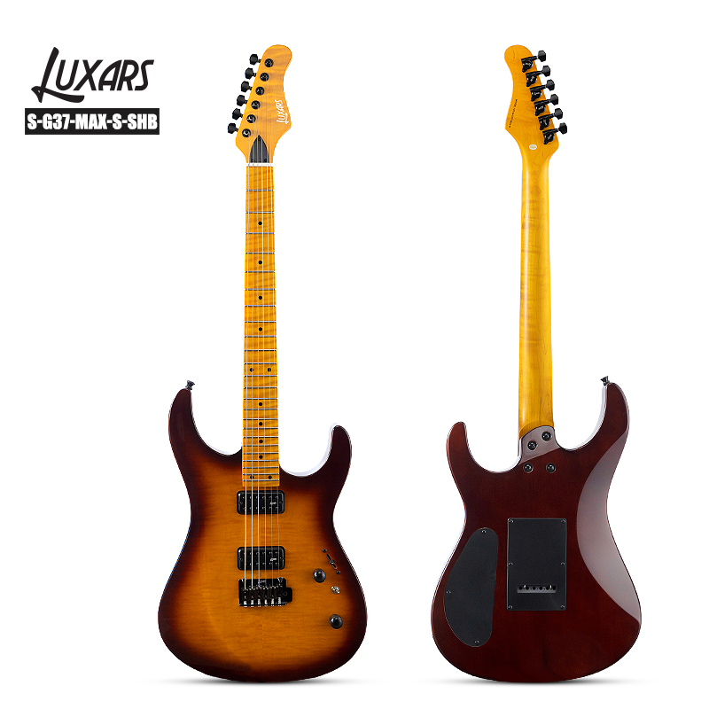 Guitarra eléctrica S-G37-MAX-S Pro | Top de chapa de arce con flamado y cuello satinado | Tinters de bloqueo + 24 trastes | HH Alnico Pickups | Hardware todo negro | 4 acabados brillantes (SBK/SBL/SHB/SPS) | 6/Cartón (precisión preparada para el escenario)